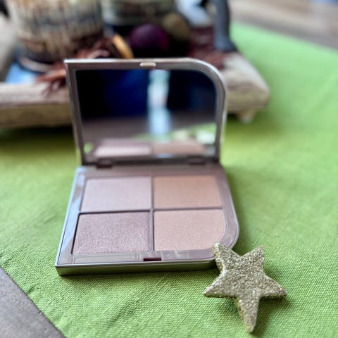 kroppen eller i ansiktet, eller bland den sammen med foundation for å oppnå ekstra glød.