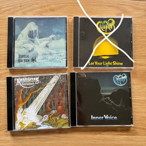To klassikere i norsk rock fra prog-bandet Ruphus selges i sjeldne kassett-utgaver. «Ranshart» fra 1974 og «Let Your Light Shine» fra 1976. Førstnevnte i Dolby-utgaven. Begge er pent brukt i VG+ stand. Navn er skrevet på innsiden av booklet. «Ranshart» selges for kr 450 pluss porto. «Let Your Light Shine» for 320. Se flere annonser på profilen min.