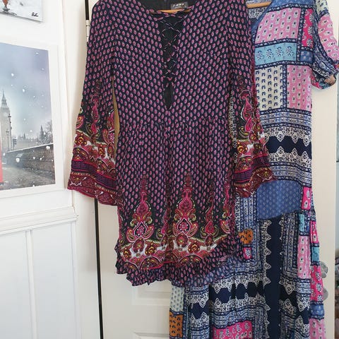 Forskjellige kjoler av forskjellige merker til alt fra hverdag til sommerfest, selges for 49 kr stk.