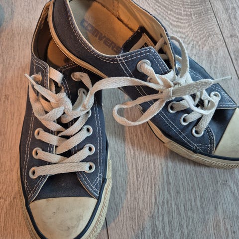 Pent og svært lite brukte, lave Converse i svart farge. Har stått ubrukt i mange år.