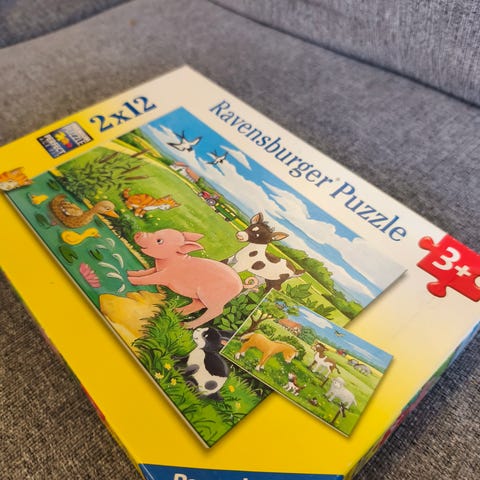 Selger puslespill for barn med tre forskjellige puslespill med bondegårdtema