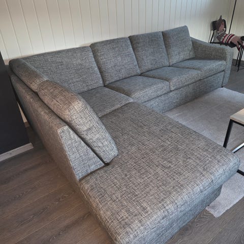 (SOLGT)Fin u sofa med sjeselong som renset og klar til den nye eier. Den er komfortabel, myk og fin å sitte i.