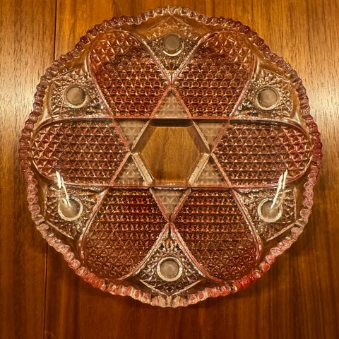 Pent utrolig fint glassfat i rosa.