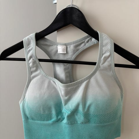 Selger to ubrukte sports-BH-er i størrelse small fra H&M. Den ene er svart og den andre lys beige, nesten hvit. Nye med tags.