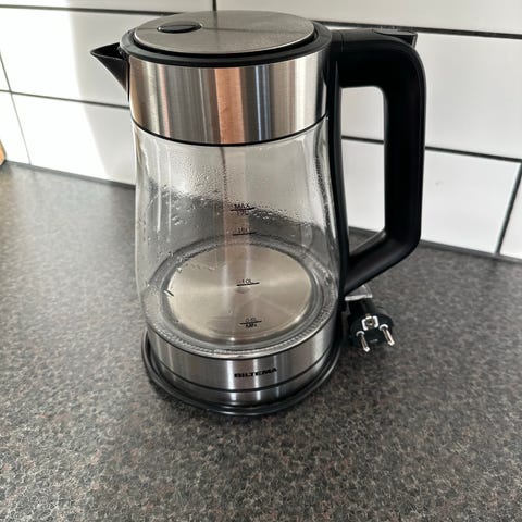 Gir bort en ca. 2 år gammal vannkokar frå Cuisine. Vore brukt en god del, fungerar som den skal. Kan lekke litt vatn frå botnen av og til, når ein skal helle vatn i koppen, men har ikkje noko å seie for funksjonen. Har gjort det heilt frå den var ny. Har avkalket den.