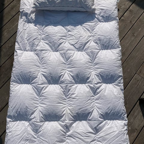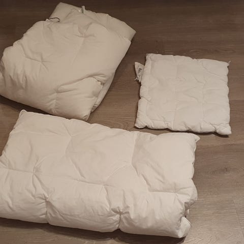 Utrolig myk dundyne og dunpute fra andungen barnedun. 🐤Hører til Princess sin dream collection. 🪶Selges helst samlet. har blitt vasket med dunsåpe fra Princes og tromlet med tennisballer, oppleves som ny, god «puff» ☺️ svanemerket, trekk i økologisk bomull, anbefalt av Norges astma og allergiforbund. Pute er 35x40, koster 399 ny, dyne er 80x100, koster 949 ny.