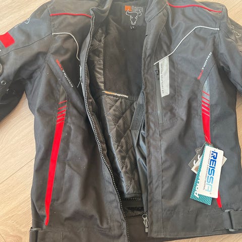 Ny jakke str XL, kun prøvd. CE- godkjent beskyttelse på albuer og skuldre. Jakke med uttakbart innefor med invendig lommer. Selges til prisantydning.