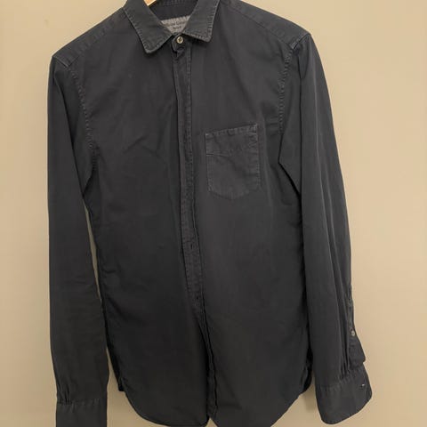Alex shirt fra Officine Generale. Str XXL, men liten i størrelsen, vil heller kalle det en L. Nypris rundt 3000, kjøpte brukt selv, men passet meg ikke slik jeg hadde håpet. Pent og lite brukt, framstår som ny. 100% lyocell, faller fint i stoffet. Veldig klassisk og fin som Skall Studio og Julie Josephine.