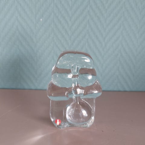 Ett par med bittesmå figurer i klart glass. Vintage glasskunst.