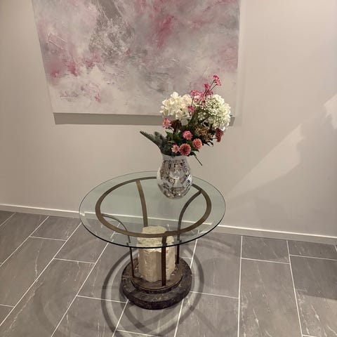 Veldig fint rundt glassbord/stuebord tilsalgs. Kjøpt for mange år siden, men pent/lite brukt. Selges på grunn av skiftet design i stuen, og går for mer moderne/enklere bord. Dette bordet vil passe perfekt hos de som liker denne stilen. Gi gjerne bud. Må hentes.