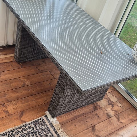 Fint bord med glassplate.