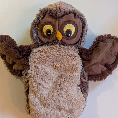 Varmeflaske med ugletrekk.
