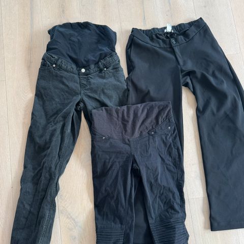 2 stk like Mammajeans / gravidbukser størrelse small. Det er en gråsvart nyanse, veldig fine! De har stoffparti man kan dra over magen. Ny pris 499kr per bukse. Kan selges samlet for 300kr eller 150kr per bukse.