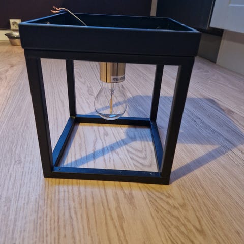 Selger en pent brukt utelampe i klassisk stil. Rektangulær form med hvitmalt metallramme og klart glass på alle sider – gir godt lys og passer fint ved inngangsparti, garasje eller på hytteveggen.