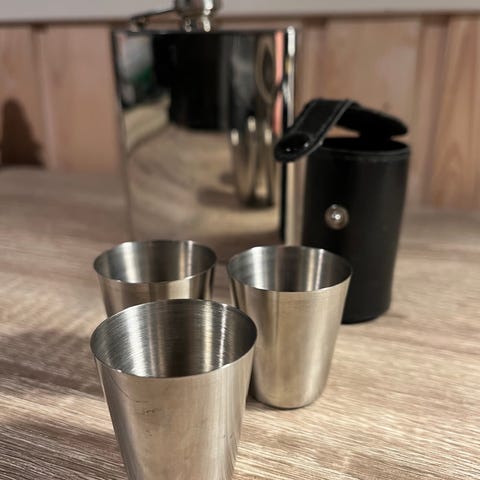 Noen lette og tette småflasker og boks med tett skrulokk.