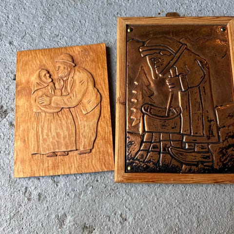 En flott klassisk metall kunst som er hangt på tre. Flott dekorativ gjenstand