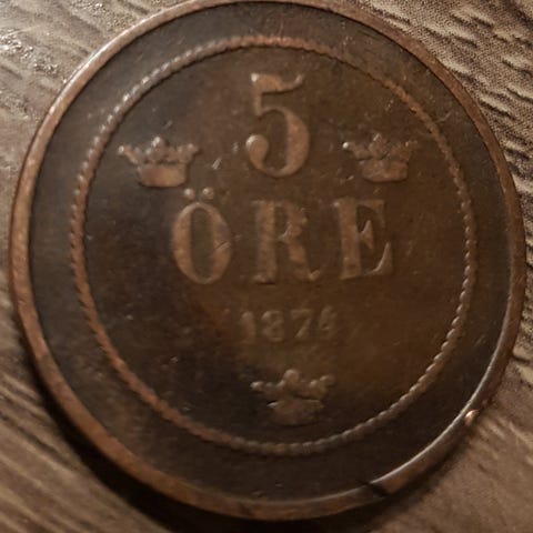 Svensk 5 Öre Mynt 1904 Bronse