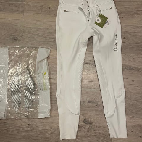 Adele ridebuksene gir komfort og teknisk ytelse til ryttere. Det skreddersydde designet, laget av slitesterkt, høyelastisk stoff sammen med foldene på baksiden, sikrer en perfekt passform for rytteren. Adele ridebuksene gir en andre-hud-effekt for optimal komfort. Det elastiske stoffet garanterer høy pusteevne og vindbeskyttelse. Silikongrepet på knærne gir stabilitet og grep i salen. Kompresjonsstoffet gir en perfekt passform. Det elastiske båndet på innsiden av beltet er utstyrt med silikon som forhindrer skjorten i å gli opp. Takket være stoffets spesielle konstruksjon gir Adele ridebuksene beskyttelse mot ultrafiolette stråler. Ridebuksene er pyntet med en Swarovski® Samshield-logo på rytterens lår og Crystal Fabric Swarovski® på baklommene, som kombinerer teknisk ytelse og eleganse.