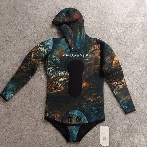 Aldri brukt i vann, noen smårifter i drakta innvendig pga prøving er limt med neoprenlim, så drakta er god som ny.