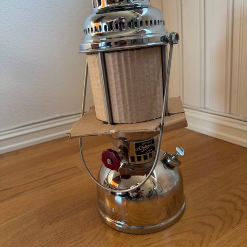 Selger min Petromax Optimus - lampa er brukt men helt komplett og har fungert. Hadde tenkt å gjøre dette til et restaureringsprosjekt men tiden strekker ikke til. Er skeptisk til å sende - er i Oslo jevnlig. 2.5 eller gi bud.