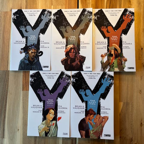 Y: The Last Man: Deluxe Edition og en paperback