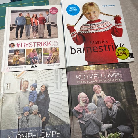 Strikkebøker selges. Kr 75 pr stk. kjøp 5 og betal for 4. Porto ved sending.