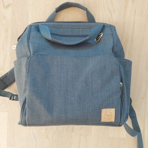 Godt bruk Pofunuo Stelle sekk i sort selges. Delen som justerer den ene skulderreimen har falt av, så vi har knytet i stedet.