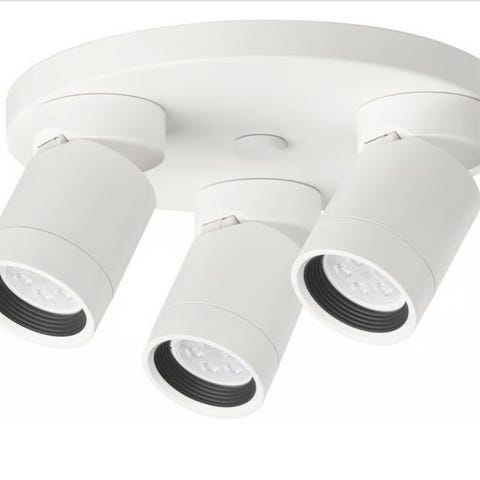 Komplett pakke med 6 downlights og nødvendig tilbehør for montering.