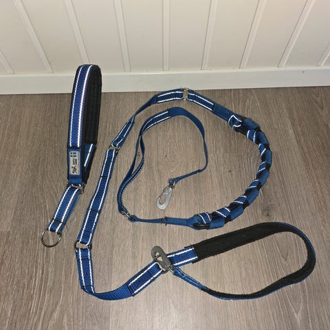 Alt pent brukt. Halsbånd og kobbel brukt bare noen få ganger.