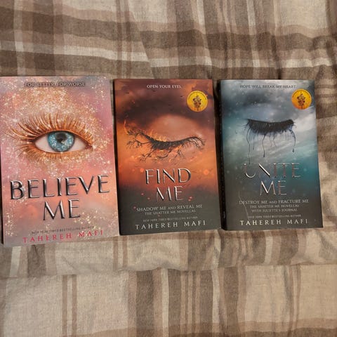 Selger bøker i shatter me serien, unntatt den første boka som heter "Shatter me". Har lest alle en gang og de har derfor nesten ikke noen bruksmerker. Selges for 75kr per bok. Kan sendes eller hentes.