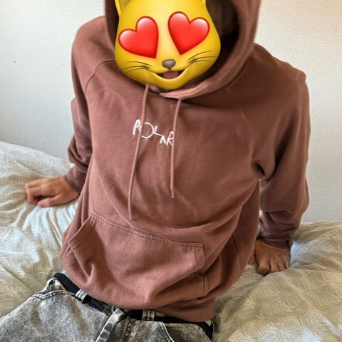 Veldig kul Polar Skate hettegenser til salgs, størrelse M. Har en flekk på arm - se bilde. Unik i fargen og print på baksiden. 🤩 100% bomull