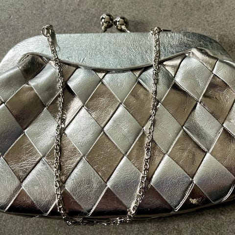Som ny. Glatt bakside, metallbiter på forsiden. 18 cm bredde, 13 cm høyde.