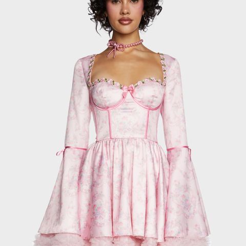 Fargen er offwhite/cream med rosa sløyfer.