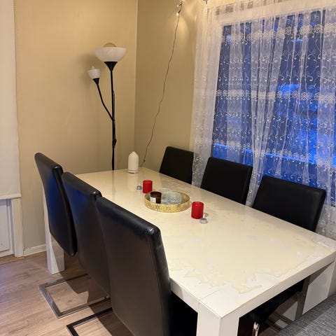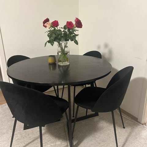 Selger meget fin apise bord, nesten ingen bruktmarker. Fremstår som lite brukt. Det følger med 4 stoler. Alle stolene kan både senkes eller at de blir høyere. Ny pris 7000 kr
