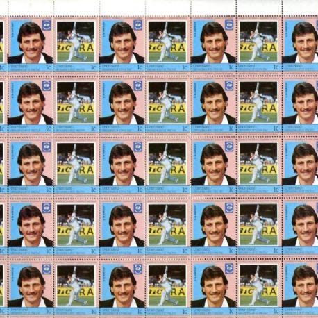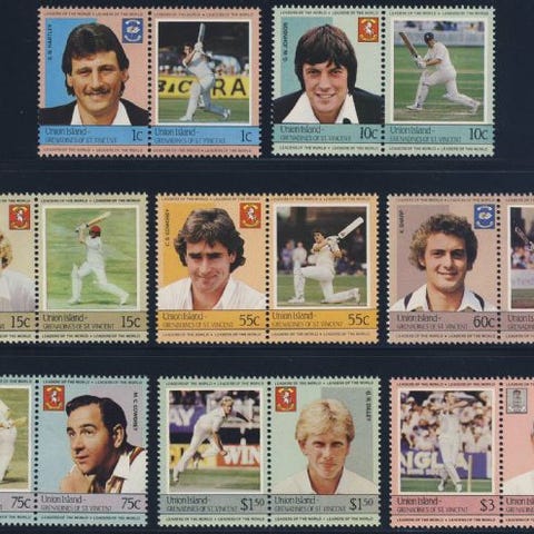 90% rabatt: St. Vincent Grenadines 1984 Cricket (Postfrisk), Michel nr. 304-19 i 8 ark a 25 par (Komplett utgave).