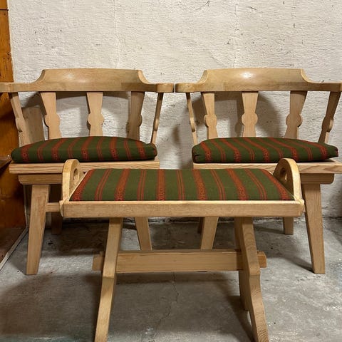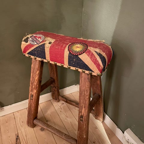 Retro Trekrakk med sitteputar som er festa med borrelås så den kan tas av.
