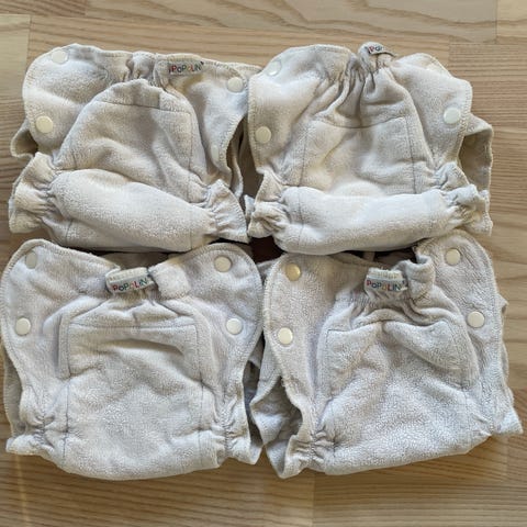 Pent brukte bleier, selges fordi jeg har for mange.