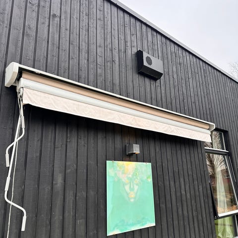 Selges grunnet overgang til annen vindusskjerming. Fungerte helt fint ved demontering. Levert av Fasadeprodukter. Årsmodell er ukjent.