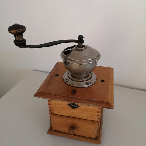 Fin gammel Eva kaffekvern med skuff.