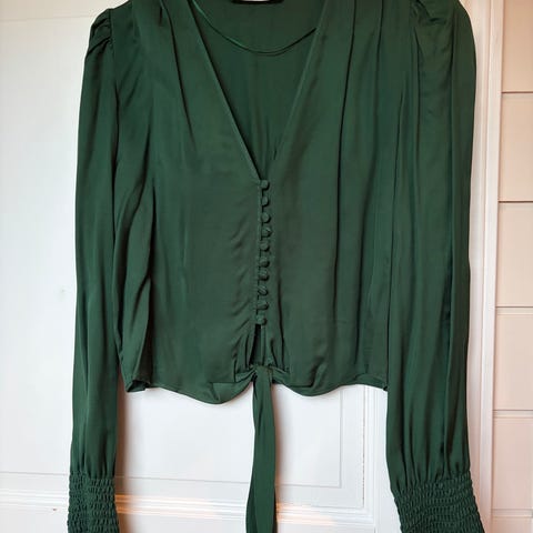 Utrolig søt bluse i grønn fra AFK-kolleksjonen til NA-KD i størrelse 34. Blusen har glidelås under armen. Ingen bruksmerker.