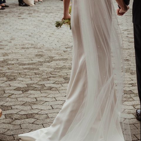 Ny pris kr. 20.000,- (i tillegg slør og underskjørt) Obs! Treg glidelås, må mulig byttes!