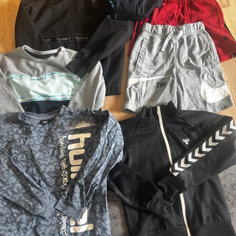 Klespakke til gutt med klær til sommer. T-skjorte basketball og Hummel, to shorts fra gullkorn (kan brukes til bading pga for inni) og endurance (super lett og tynn). Str.140 (10år).