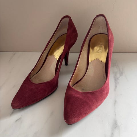Skinn pumps fra danske Yvonne Koné, Varm rosa, høy hæl og spiss tupp. Str 41, passer meg/litt romslige, jeg bruker 40 og har bred fot. Litt fuktmerker/flekker i tuppen på skinnet, kan sikkert smøres så de blir jevnere, selges derfor billig.