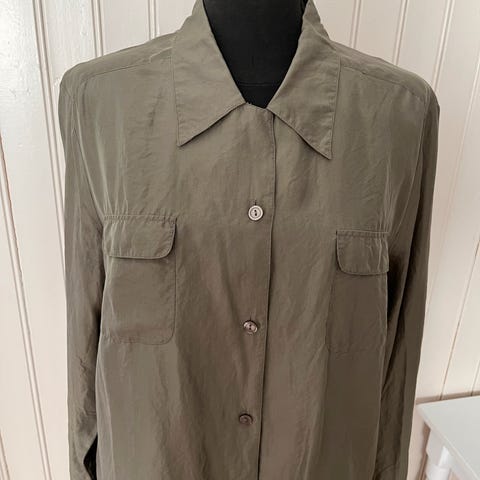 Militærgrønn skjorte med knapper og brystlommer. 100% silke.