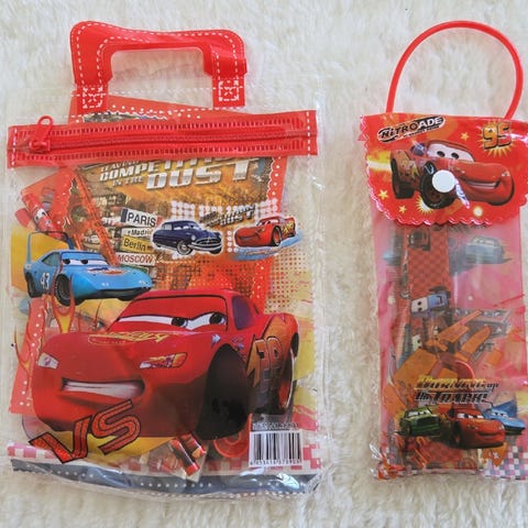 Disney Cars Skrive Sett : Penal Bag, Fargestifter, Blyant x2, Blyantspisser & Viskelær : Størrelse M : 65 kr (Helt nytt/Uåpnet)
