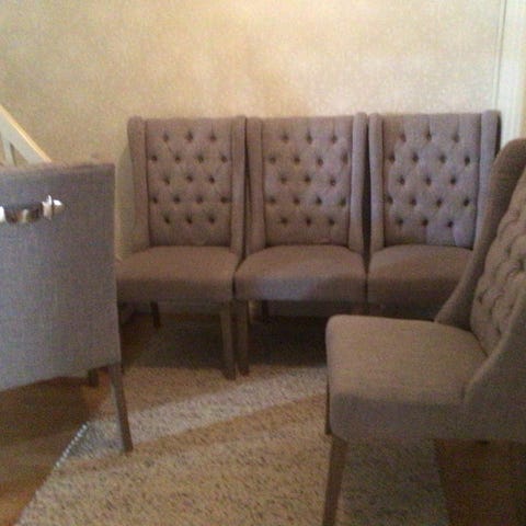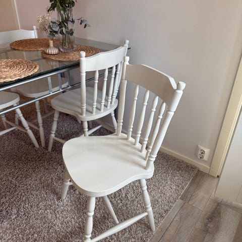 Pent brukte hardwood stoler, og godt vedlikeholdt. Sammenleggbare og tar liten plass. kr 700 pr stk