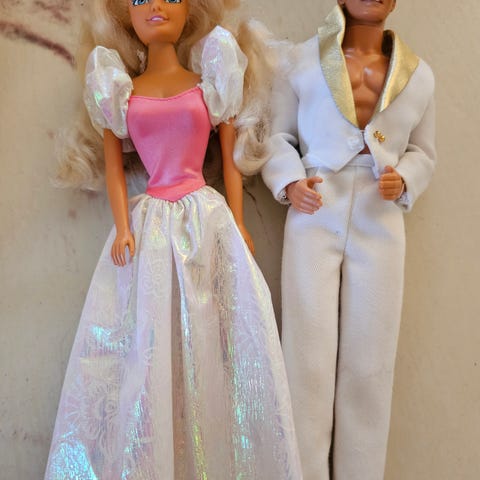 Barbie og Ken Mattel selges samlet for 250 kr . Ken er merket med 1968 Indonesia og Barbie et litt mer formfull en de vanlige Barbie og merket Mattel 2016 . Kan sendes med post nord for 70 kr eller posten eller fiks ferdig eller kan hentes etter avtale .