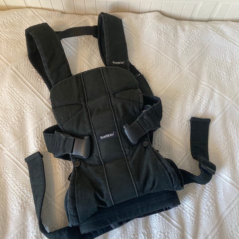 Helt ny BabyBjörn bæresele med tilhørende veske å oppbevare den i.