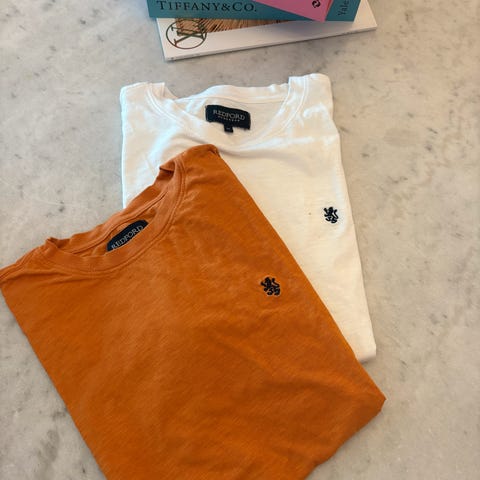 Selv om skjortene er i ulik størrelse er de blå skjortene kortermet og de hvite langermet.