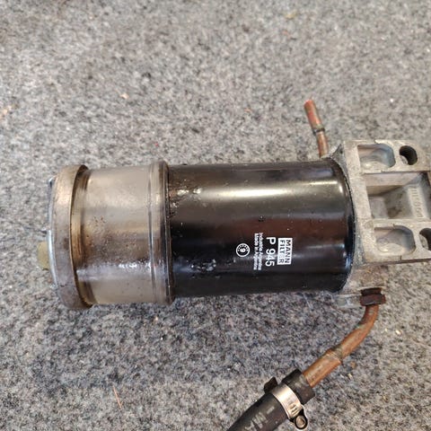 "Standard" dieselfilter med avtapping, laget i metall for lovlig montering i motorrommet. Tar vanlige CAV 296 filtre.